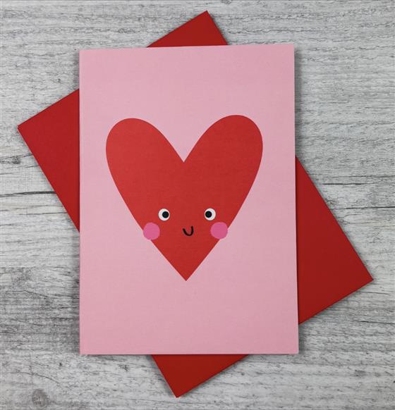 This hand-illustrated, super cute, heart greeting card is perfect for celebrating a variety of romantic occasions. With a sweet, cheeky smile, this love themed design is ideal for gifting on Valentine's Day, an Anniversary, Engagement or Wedding!