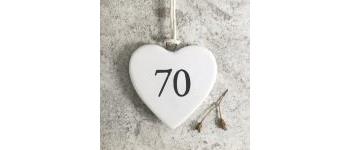 Hanging porcelain heart - age 70, perfect to attach to those special birthday flowers