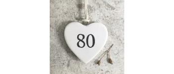 Hanging porcelain heart - age 80, perfect to attach to those special birthday flowers