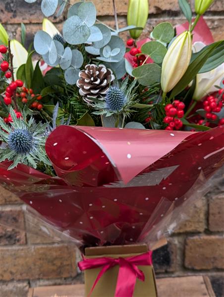 Traditional Christmas Lily, Thistle and Berry Hand Tied